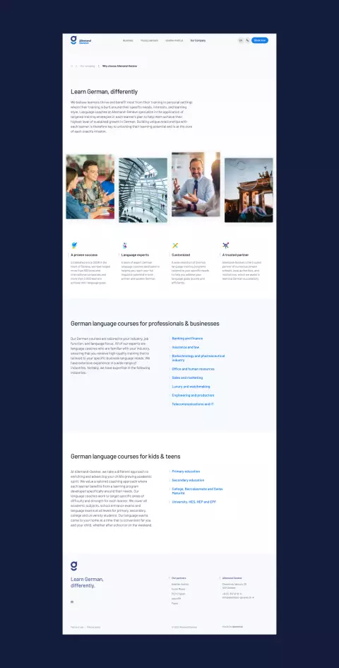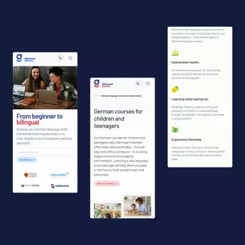 Identité visuelle modulaire et site web bilingue pour un institut de langue réputé.